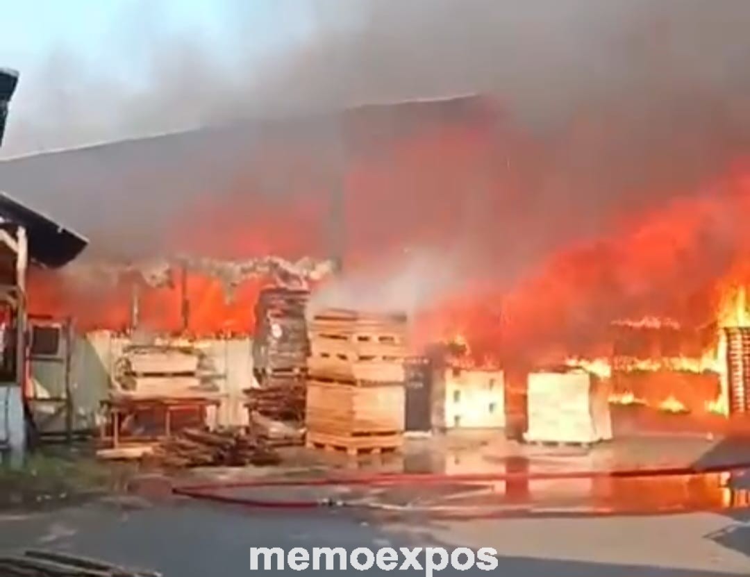 memoexpos.co – Kebakaran hebat melahab gudang pengolahan kayu PT Layo Seng Fong di Jalan Nurcholish Majid, Desa Tunggorono, Kecamatan/Kabupaten Jombang, pada Jum’at (13/9/2023) pagi.