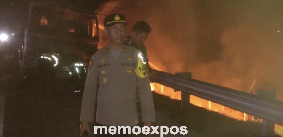 memoexpos.co – Kebakaran truk tangki terjadi di Kilometer 673 Jombang – Mojokerto (Jomo) tepatnya di Desa Gondangmanis, Kecamatan Bandarkedungmulyo, Kamis (7/12/2023).