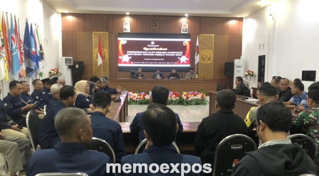 memoexpos.co – Komisi Pemilihan Umum (KPU) Kabupaten Jombang gelar Rapat Koordinasi (Rakor) bersama Bawaslu, Pemkab, TNI dan Polri untuk tertibkan Alat Peraga Kampanye (APK) Pemilu 2024, di Kantor KPU setempat, Sabtu (10/2/2024).