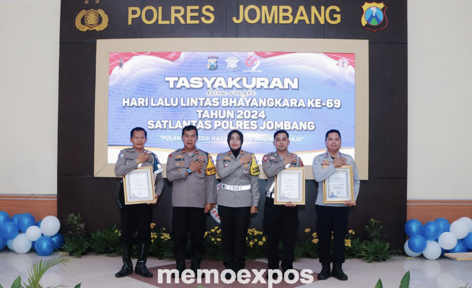 memoexpos.co – Peringatan Hari Ulang Tahun (HUT) Lalu Lintas Bhayangkara ke-69, Polres Jombang menggelar tasyakuran di Graha Bakti Bhayangkara, pada Kamis (26/9/2024).
