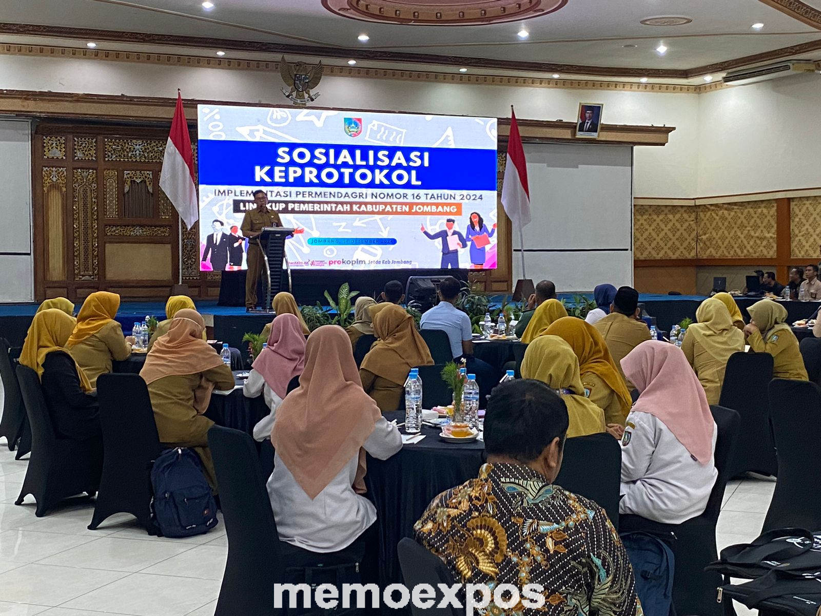 memoexpos.co – Bagian Protokol dan Komunikasi Pimpinan (Prokopim) Sekretariat Daerah Kabupaten Jombang menggelar sosialisasi keprotokolan kepada 150 peserta dari instansi vertikal ataupun lingkup pemerintah Kabupaten Jombang.