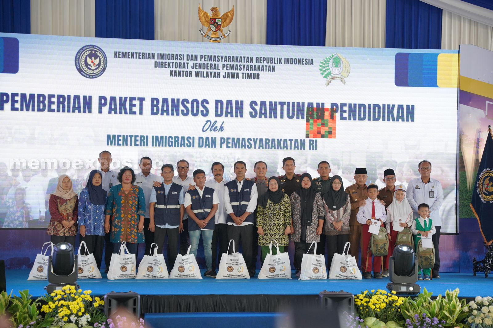 Sementara itu, pemberian 200 paket bantuan sosial dan santunan pendidikan bagi siswa berprestasi dilakukan oleh Menteri Imipas Agus Andrianto.