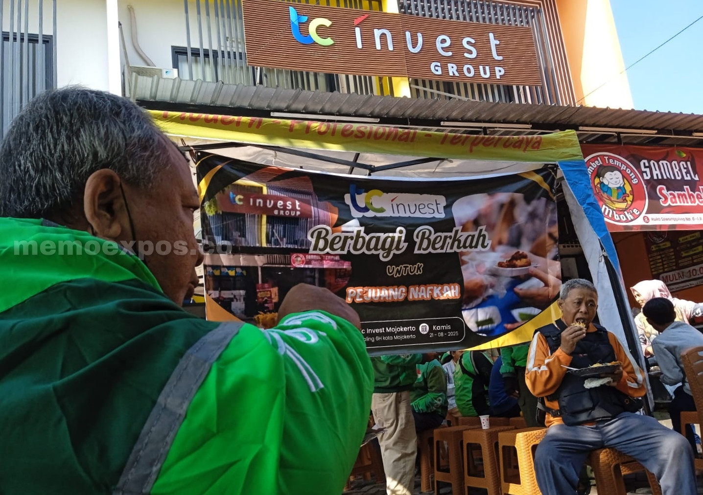 MOJOKERTO – Momen sarapan bersama kerapkali menjadi cara untuk saling berbagi dengan sesama tanpa melihat latar belakang pekerjaan. Seperti terlihat di halaman kantor TC Invest Mojokerto dan Sambel Tempong Mbok’e (UMKM binaan) di Jln Sawunggaling nomor 6 blok H-I Kota Mojokerto, Kamis (21/08/2025).