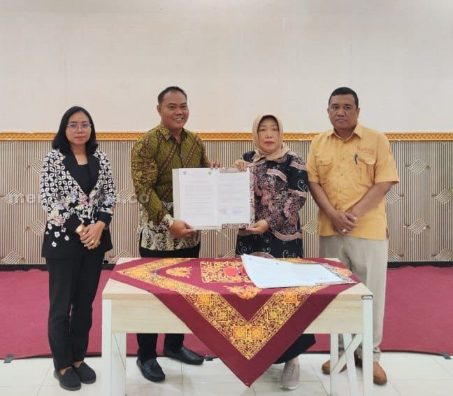 Kepala Dinas Kominfo Jombang bersama Rektor ITEBIS PGRI Dewantara Jombang usai melakukan perjanjian kerjasama dan sosialisasi SP4N-Lapor. (Foto: istimewa)