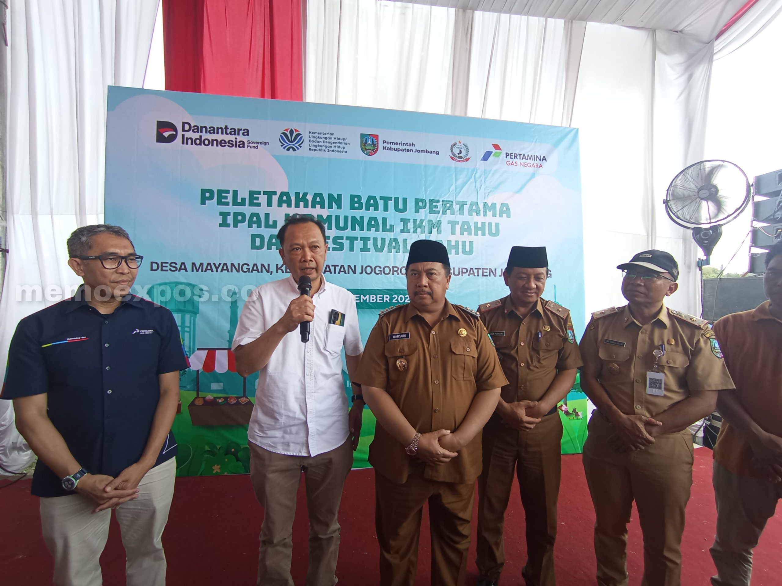 memoexpos.co – Kabupaten Jombang melalui Dinas LingkunganHidup melakukan pembangunan Instalasi Pengelolaan Air Limbah Komunal (IPAL) di kawasan sentra UMKM Tahu, Desa Mayangan, Kecamatan Jogoroto, Jombang. Kegiatan tersebut ditandai dengan peletakan batu pertama dan penanaman pohon secara simbolis, Selasa (16/09/25).