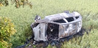 Mengantuk, Mobil CRV Warga Kepuhkembeng Masuk Sawah dan Terbakar