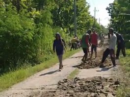 Pemerintah Terkesan Tutup Mata, Warga Jombang Perbaiki Jalan Rusak Secara Patungan
