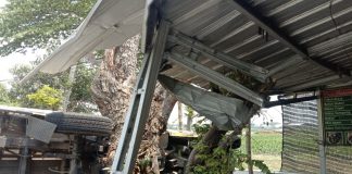 Truk Muatan Buah di Jombang Sruduk Warung Hingga Terguling