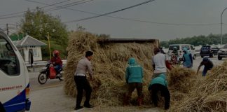 Overload, Truk Muatan Jerami Terguling di Jombang
