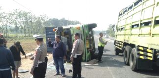 Pengemudi Kurang Konsentrasi, Kontainer Naik ke Median Jalan Hingga Terguling