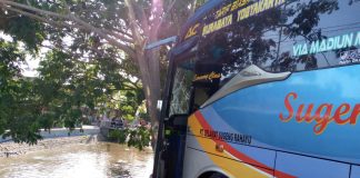 Bus Sugeng Rahayu Tabrak Pembatas Jalan di Jombang, Hampir Masuk Sungai